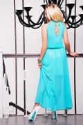 Сарафан молодежный полуоблегающего силуэта на завязывающихся на спине бретелях.На горловине полочки кокетка 3 см,из-под которой идет сборка,придающая объем.Кокетка украшена декоративным подвесом.Талия подчеркнута широким отрезным поясом,прошитым резинкой и отделяющим длинную юбку.