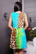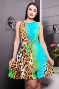 Сарафан женский, молодежный, полуоблегающего силуэта, без рукавов. Вырез горловины - лодочка. Лиф оформлен декоративной накладной драпировкой из отделочной ткани - шифона, украшен декоративным кольцом. Юбка отрезная полусолнце, длиной около 50 см.