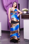 Сарафан молодежный,облегающего силуэта.Вырез лифа оформлен запахом.Под линией груди пояс отделяющий длинную юбку.Декоративный вырез на спинке украшен металлическим декором.Под ним на спинке находится пояс с драпировкой.Пояс так-же оформлен металлическим украшением.Плечи на завязках.