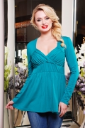 Туника молодежная,полуприлегающего силуэта.Рукав длинный.Полочка с кокетками и отрезным лифом,с драпировкой формирующей запах.Длина 65 см.